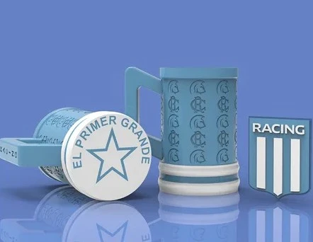Demostrá tu pasión por Racing Club con esta jarra chop impresa en 3D, pensada para verdaderos hinchas de la Academia. Su diseño sólido y detallado incorpora los colores y el escudo del club, logrando una pieza única que combina identidad, estilo y originalidad.